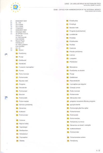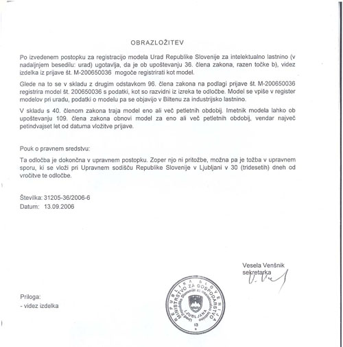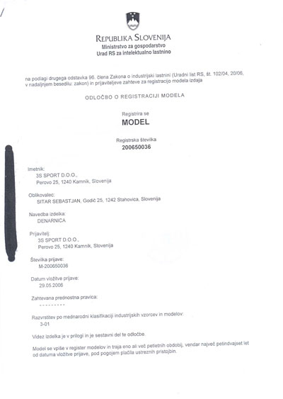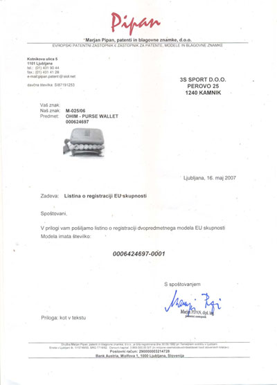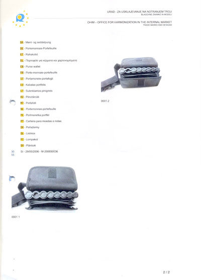Eurodenarnica je modelno zaščitena v državah EU in na Hrvaškem.